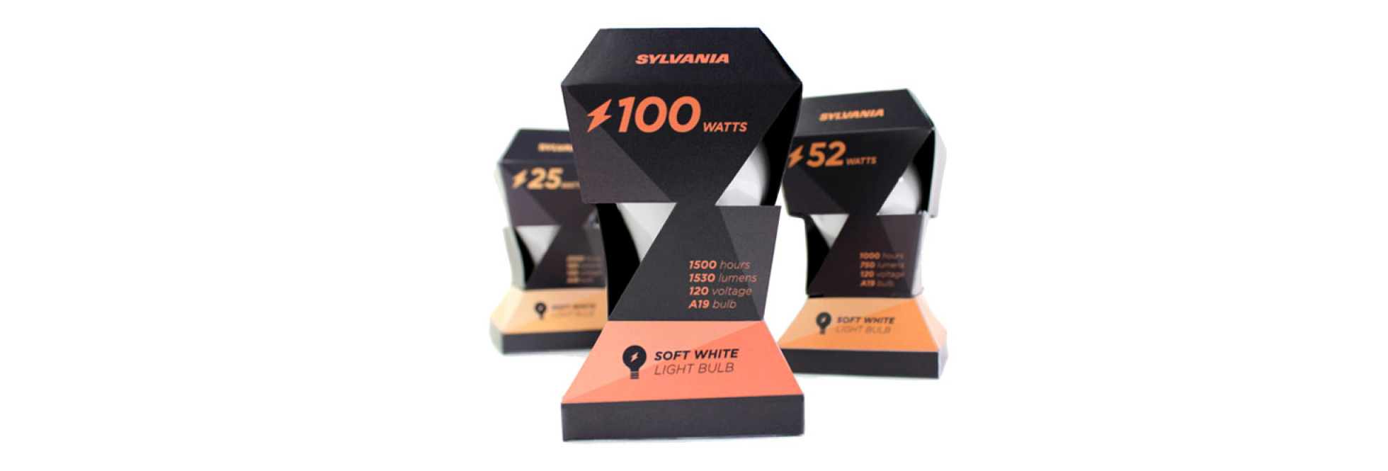 The current packaging for the bulbs are similar to most competitors and does not have strong shelf presence. After realizing that generally most light bulb packaging have a similar look, Sylvania’s design needed to stand out. This unique designed package resembles a lightning bolt shape, symbolizing electricity. The strong design will attract the consumer over Slyvania’s competing brands.